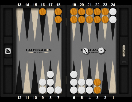 En jouant 8/7 4/1, nous proposons certes une frappe directe mais notre adversaire risque de détruire sa Prime avant nous. En effet, outre le 1 nécessaire pour frapper notre pion isolé, il lui faudra dans un avenir très proche 2 six.